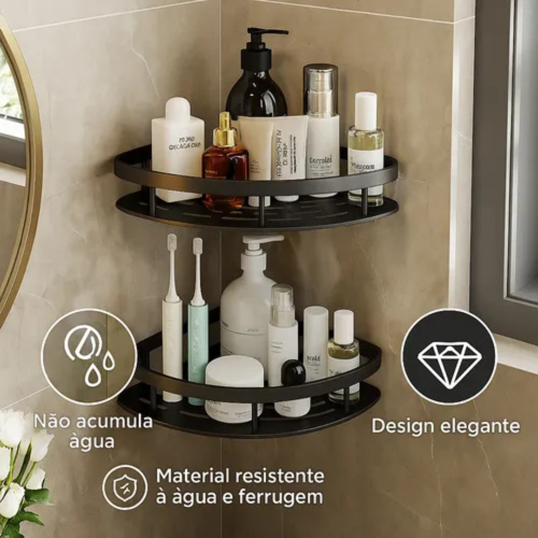 O Shampoo Cantoneira Porta é a solução ideal para manter shampoos, sabonetes e cremes sempre ao alcance das mãos. Sem sujeira, sem bagunça e sem precisar furar — a instalação é feita com adesivos ultra resistentes que não danificam sua parede!